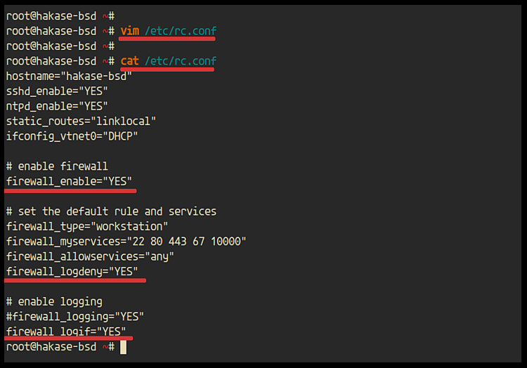 # enable firewall firewall_enable="YES"
