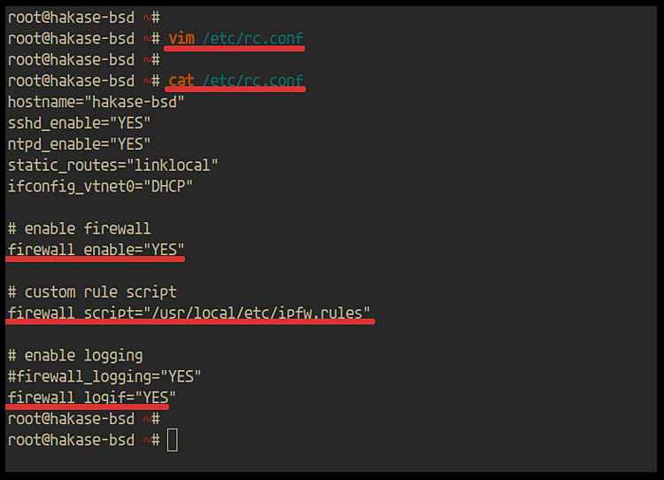 Para activar el cortafuegos ipfw, puedes añadir ‘firewall_enable=»YES»‘ al archivo ‘/etc/rc.conf’.