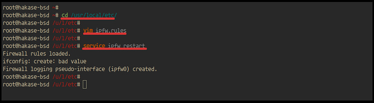 cd /usr/local/etc/ vim ipfw.rules