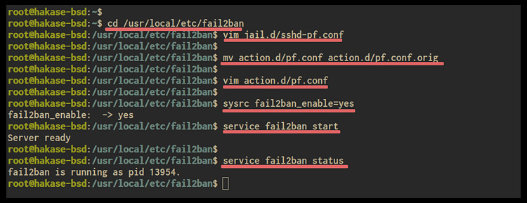 El servicio fail2ban está funcionando en FreeBSD 12.0 con el cortafuegos pf como acción de prohibición.