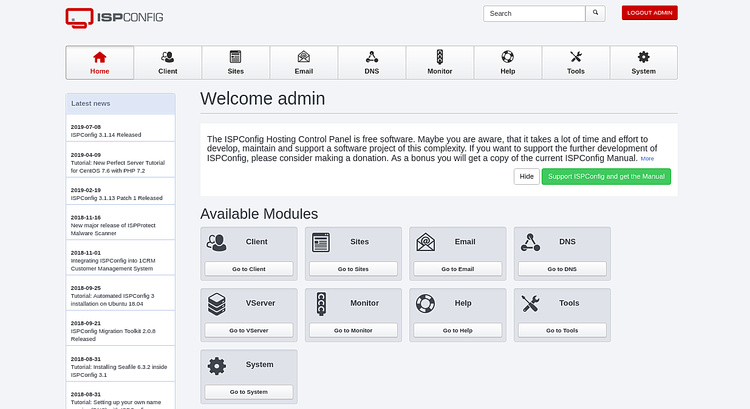 ISPConfig es un potente panel de control gratuito y de código abierto para servidores Linux que te permite gestionar, supervisar y controlar todas las tareas a través de un navegador web. Es muy seguro, rápido y estable, y lo utilizan muchos administradores de sistemas para gestionar sus servidores. Puedes añadir dominios, direcciones de correo electrónico, sitios web, bases de datos y mucho más con ISPConfig.