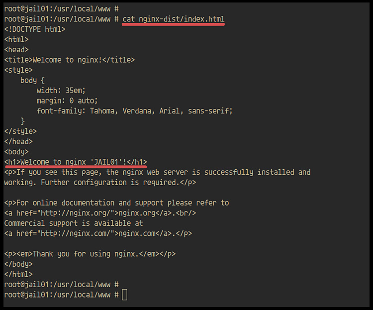 A continuación, cambiaremos la página index.html por defecto en la ‘jail01’.