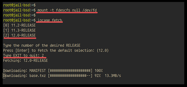 Para crear una nueva jaula, necesitarás descargar la Release de FreeBSD. Y puedes crear una nueva jaula que sea una versión diferente de la versión de tu FreeBSD anfitrión.