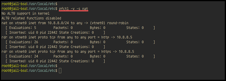 Además, puedes comprobar el estado nat en el cortafuegos pf.