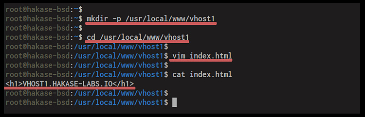mkdir -p /usr/local/www/vhost1 cd /usr/local/www/vhost1