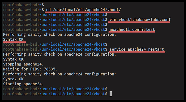 cd /usr/local/etc/apache24/vhost/ vim vhost1.hakase-labs.conf