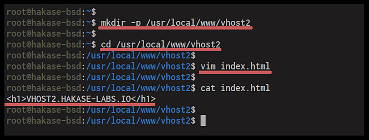 mkdir -p /usr/local/www/vhost2 cd /usr/local/www/vhost2