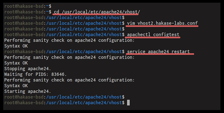 cd /usr/local/etc/apache24/vhost/ vim vhost2.hakase-labs.conf