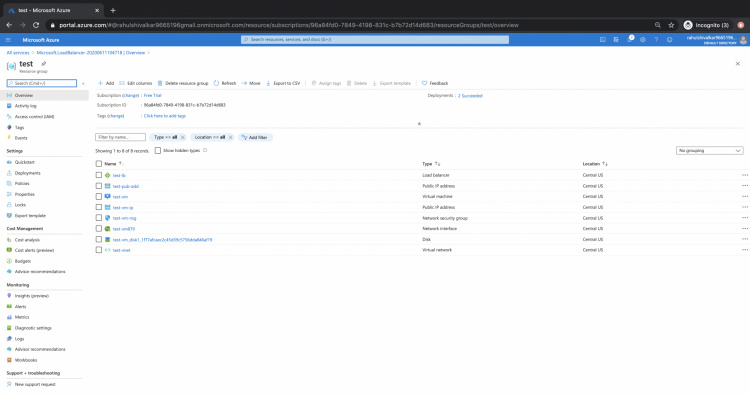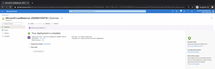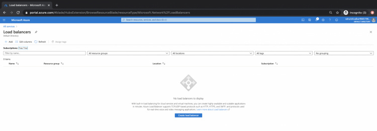Haz clic en Grupo de recursos «prueba» para ir al Grupo de recursos que contendrá el Equilibrador de carga.
