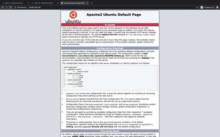 - 1 o más Máquinas Virtuales Azure con Apache instalado (Busca «¿Cómo crear una Máquina Virtual en Azure?» para aprender a crear una Máquina Virtual en Azure).