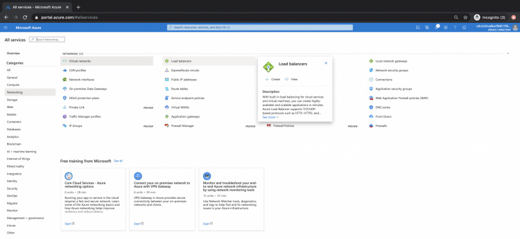 Encontrarás el Equilibrador de Carga en Redes, haz clic en Equilibrador de Carga en Redes.