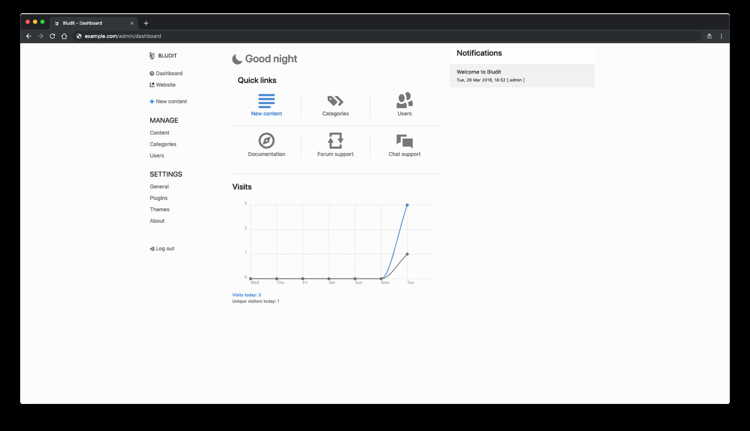 Bludit es un CMS sencillo, rápido, seguro y de archivo plano que te permite crear tu sitio web o blog en cuestión de segundos. Es completamente gratuito y de código abierto. Puedes consultar su código fuente en Github. Bludit utiliza archivos en formato JSON para almacenar el contenido, no necesitas instalar ni configurar una base de datos. Sólo necesitas un servidor web compatible con PHP. Bludit incorpora todas las herramientas SEO para mejorar tu posicionamiento en todos los buscadores y redes sociales. Dispone de un rico sistema de temas y plugins que puedes utilizar para cambiar el aspecto de tu sitio. En este tutorial, realizaremos la instalación y configuración del CMS Bludit en el sistema FreeBSD 12 utilizando Nginx como servidor web.
