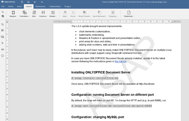 Cómo instalar el Servidor de Documentos ONLYOFFICE 5.4 desde el paquete snap