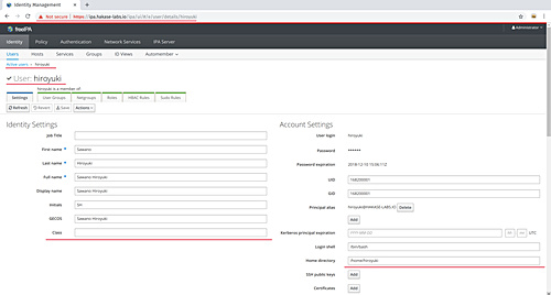 Para este ejemplo, crearemos un nuevo usuario de FreeIPA llamado ‘hiroyuki’. Y por supuesto, puedes sustituirlo por tu propio usuario. A continuación, intenta acceder al servidor a través de SSH utilizando ese nuevo usuario.