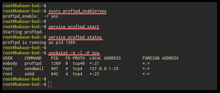 Ahora verás que el servicio ProFTPd está en funcionamiento en el sistema FreeBSD 12.0.