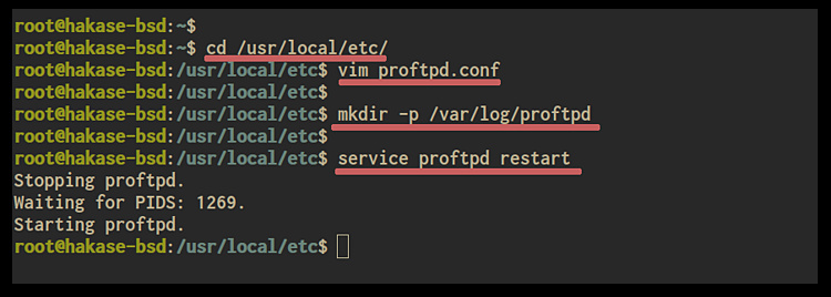 A continuación, reinicia el servicio ProFTP mediante el siguiente comando.