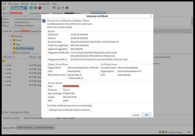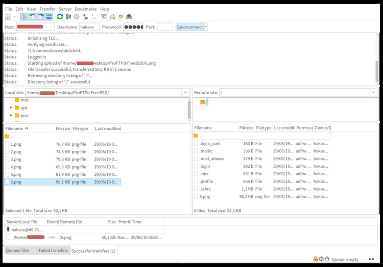Como resultado, estarás conectado al servidor ProFTPd. Y podrás transferir tus archivos de forma segura a través del servidor ProFTPd con el SSL/TLS activado.