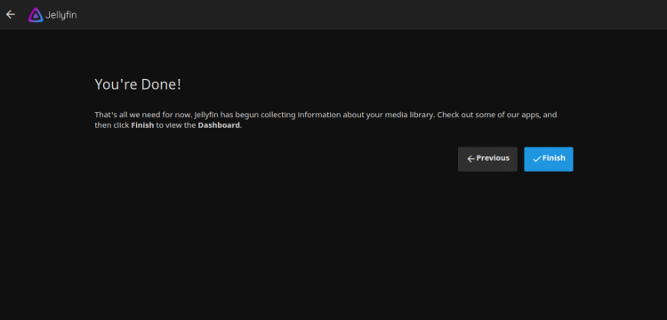 En este punto, Jellyfin está instalado y funcionando. Ya puedes pasar al siguiente paso.