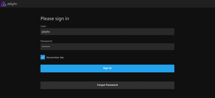 Pulsa el botón Finalizar. Deberías ver la página de inicio de sesión de Jellyfin: