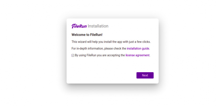 Ahora, abre tu navegador web y accede a la interfaz web de FileRun utilizando la URL http://filerun.example.com. Deberías ver la siguiente pantalla: