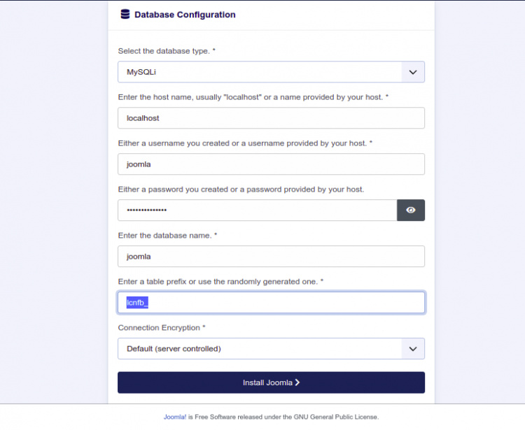 MariaDB [(none)]> GRANT ALL PRIVILEGES ON joomla.* TO 'joomla'@'localhost' IDENTIFIED BY "securepassword";