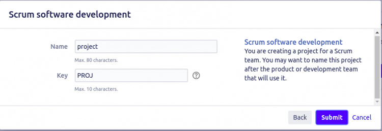 Proporciona el nombre y la clave de tu proyecto, y haz clic en el botón Enviar. Deberías ver el panel de Jira en la siguiente pantalla: