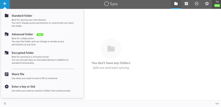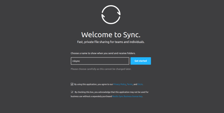 Define tu nombre de Resilio Sync y pulsa el botón Comenzar. Deberías ver la siguiente página: