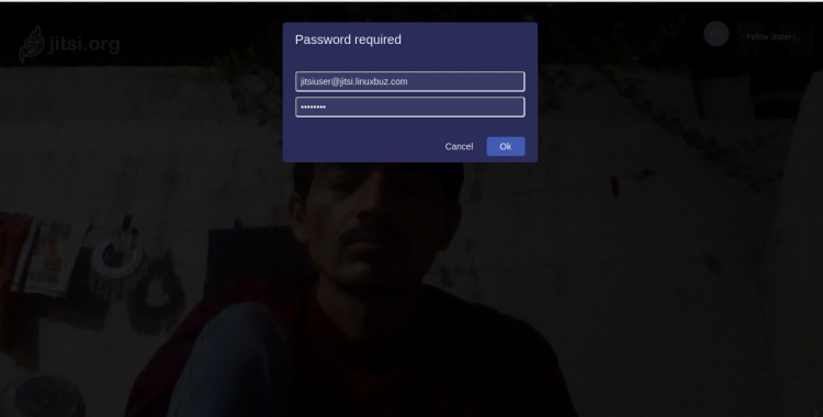 En este punto, Jitsi Meet ya está configurado para que sólo los usuarios registrados puedan crear salas de conferencias. Una vez creada una sala de conferencias, cualquier usuario puede unirse a ella sin proporcionar ninguna credencial. Sólo necesita la dirección única de la sala de conferencias y una contraseña opcional establecida por el creador de la sala.