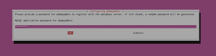Escribe la contraseña del usuario MySQL ‘phpmyadmin’ y elige de nuevo‘OK’.