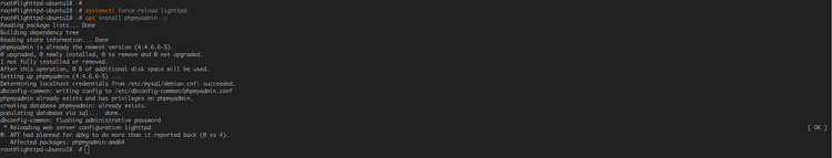systemctl force-reload lighttpd apt install phpmyadmin -y