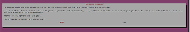 Ahora configura el phpMyAdmin con el dbconfig-common, elige ‘YES‘.