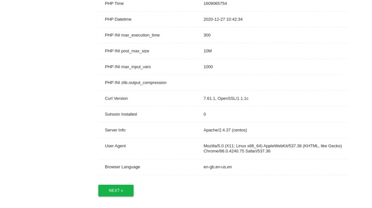 Haz clic en el SIGUIENTE, deberías ver la página de comprobación del sistema:
