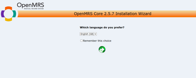 Ahora, abre tu navegador web y accede al asistente de instalación web de OpenMRS utilizando la URL http://your-server-ip:8080/openmrs. Deberías ver la pantalla de selección de idioma de OpenMRS: