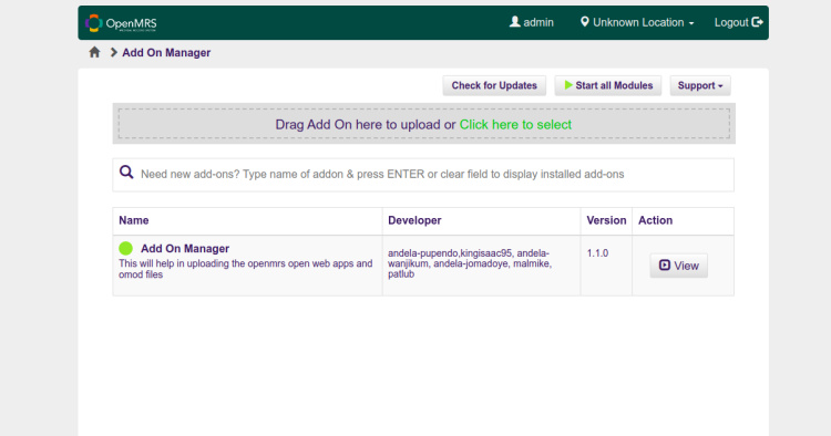 OpenMRS es un eficaz sistema de almacenamiento y recuperación de historiales médicos electrónicos (EMR) publicado como software de código abierto. Ayuda a prestar asistencia sanitaria en los países en desarrollo para tratar a millones de pacientes de VIH/SIDA y tuberculosis (TB). Se basa en los principios de apertura para intercambiar datos de pacientes con otros sistemas de información médica. Puedes gestionar todos los historiales médicos electrónicos a través de la interfaz web de OpenMRS.