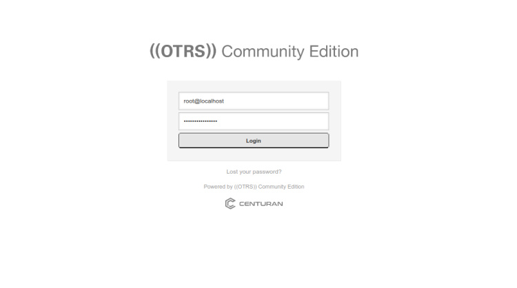 Haz clic en la URL proporcionada. Serás redirigido a la pantalla de inicio de sesión de OTRS: