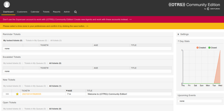 Ahora, actualiza la pantalla de OTRS. Deberías ver que el error ha desaparecido.
