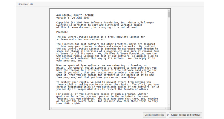 Haz clic en el botón Siguiente. Deberías ver la pantalla de Licencia de OTRS: