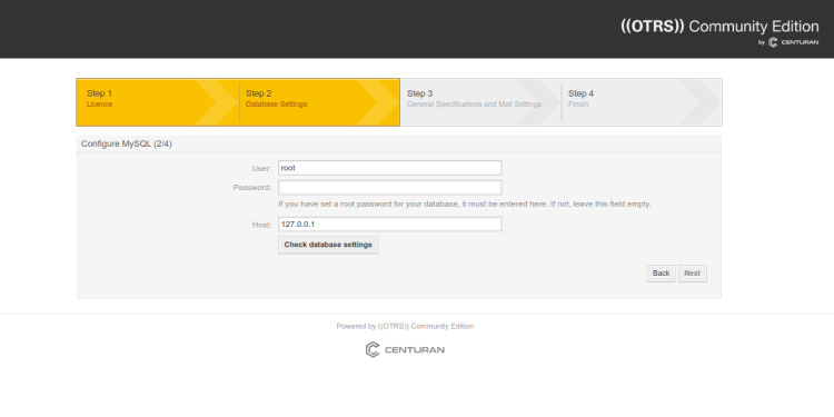 En primer lugar, crea un usuario dedicado para ejecutar OTRS utilizando el siguiente comando.