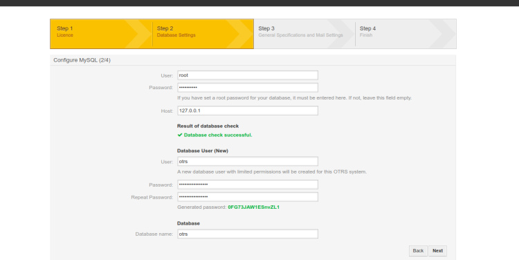 Proporciona tu nuevo usuario y contraseña de la base de datos y pulsa el botón Siguiente. Deberías ver la siguiente pantalla: