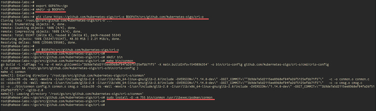 En este paso, vamos a construir e instalar el conmon desde el código fuente de CRI-O. Pero en primer lugar, necesitamos crear y definir el directorio del proyecto de la ruta go.