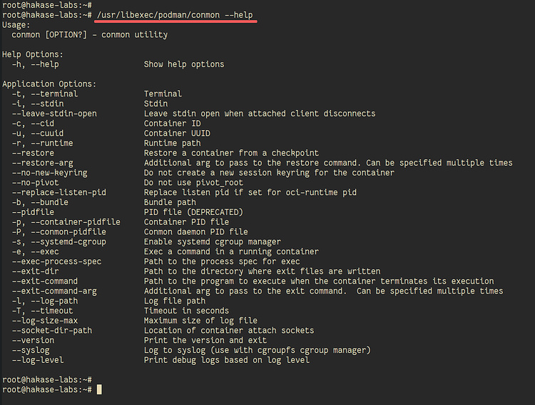 Como resultado, la utilidad conmon se instalará en el directorio ‘/usr/libexec/podman’. Compruébalo utilizando el siguiente comando.