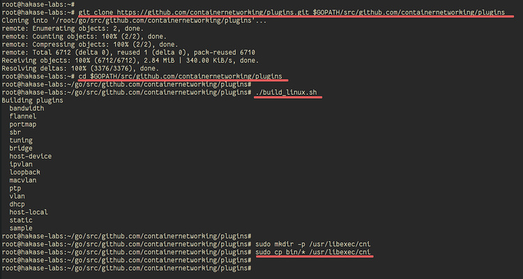 En este paso, vamos a instalar manualmente desde el código fuente los plugins de red estándar para contenedores Linux CNI (Container Network Interface).