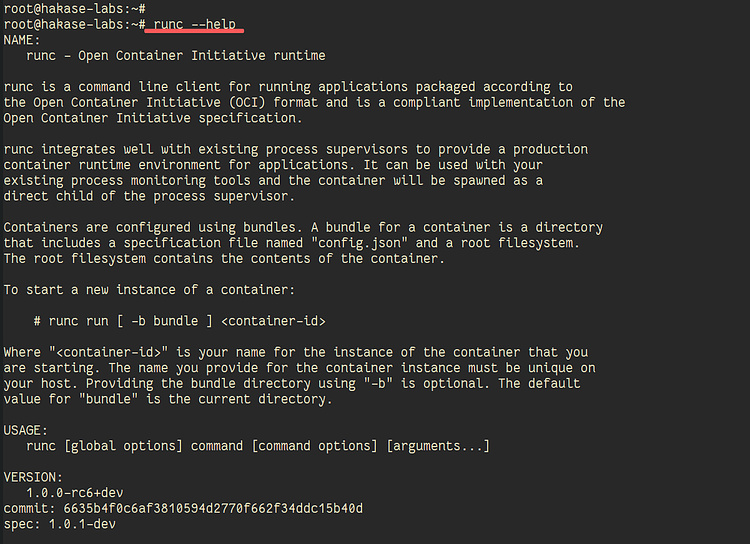 Una vez completada la instalación, comprueba el tiempo de ejecución del contenedor Runc OCI utilizando el siguiente comando.