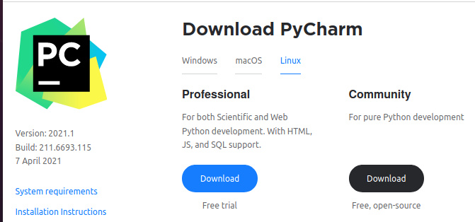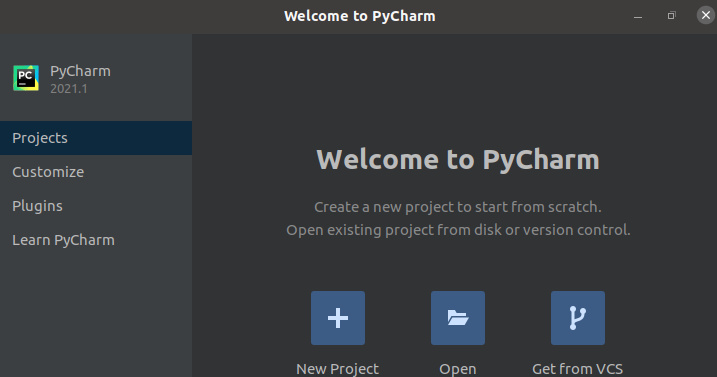 $ pycharm-community-2021.1/bin/pychar.sh