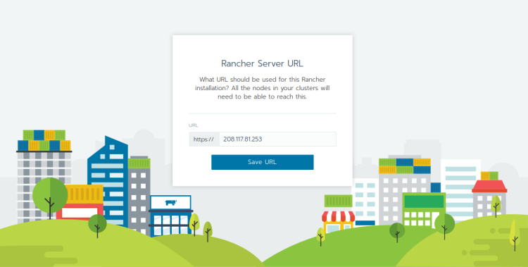 En este punto, Rancher está instalado y escucha en el puerto 443. Ahora puedes acceder a él utilizando la URL https://your-server-ip. Serás redirigido a la pantalla de bienvenida de Rancher: