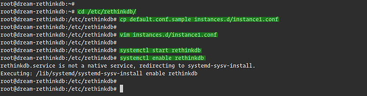 systemctl restart rethinkdb systemctl enable rethinkdb