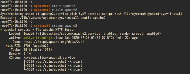 Como resultado, la configuración del host virtual Apache para Tiki Wiki se ha completado.