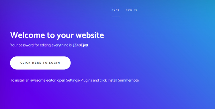 Ahora, abre tu navegador web y accede a la interfaz web de WonderCMS utilizando la URL http://wondercms.example.com. Deberías ver la siguiente pantalla que contiene la contraseña de acceso: