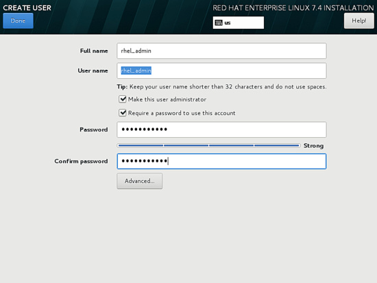Instalar el servidor Red Hat Enterprise Linux 7.4