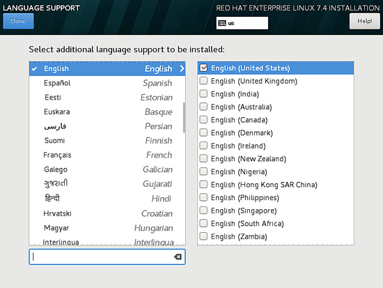 A continuación, pulsa el menú de Soporte de Idioma y configura el soporte de idioma de tu sistema. De nuevo, cuando termines este paso, pulsa en Hecho para volver al menú principal.